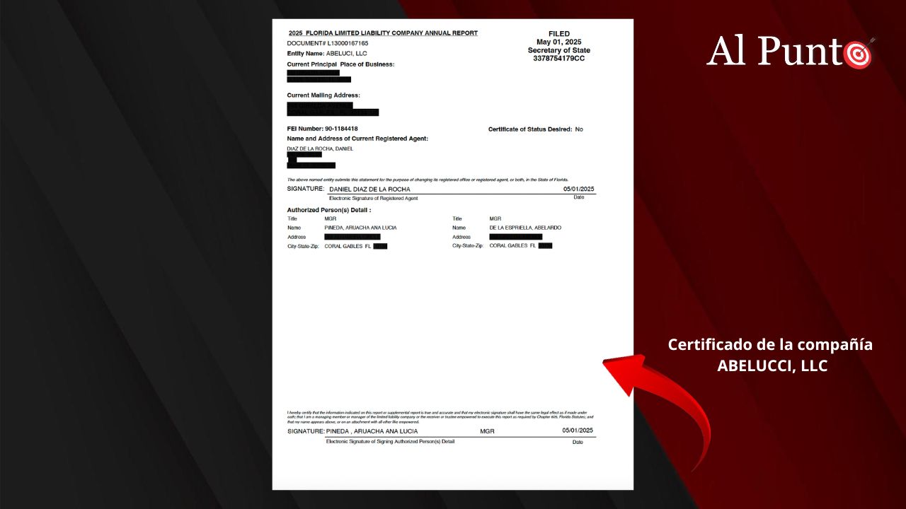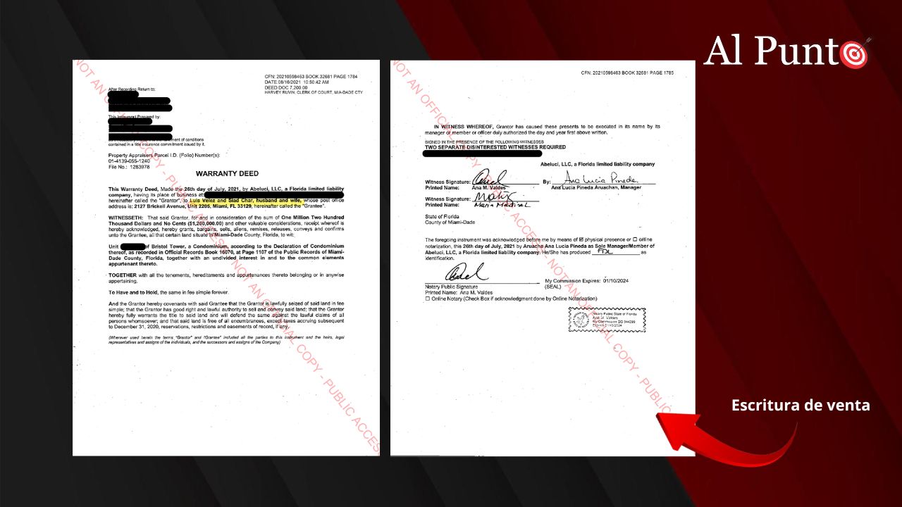 El apartamento fue vendido a la familia Vélez-Char por Abeluci LLC, una empresa registrada en Coral Gables. Según documentos oficiales, la sociedad tiene como managers a Abelardo de la Espriella y a Lucía Pineda, su esposa.